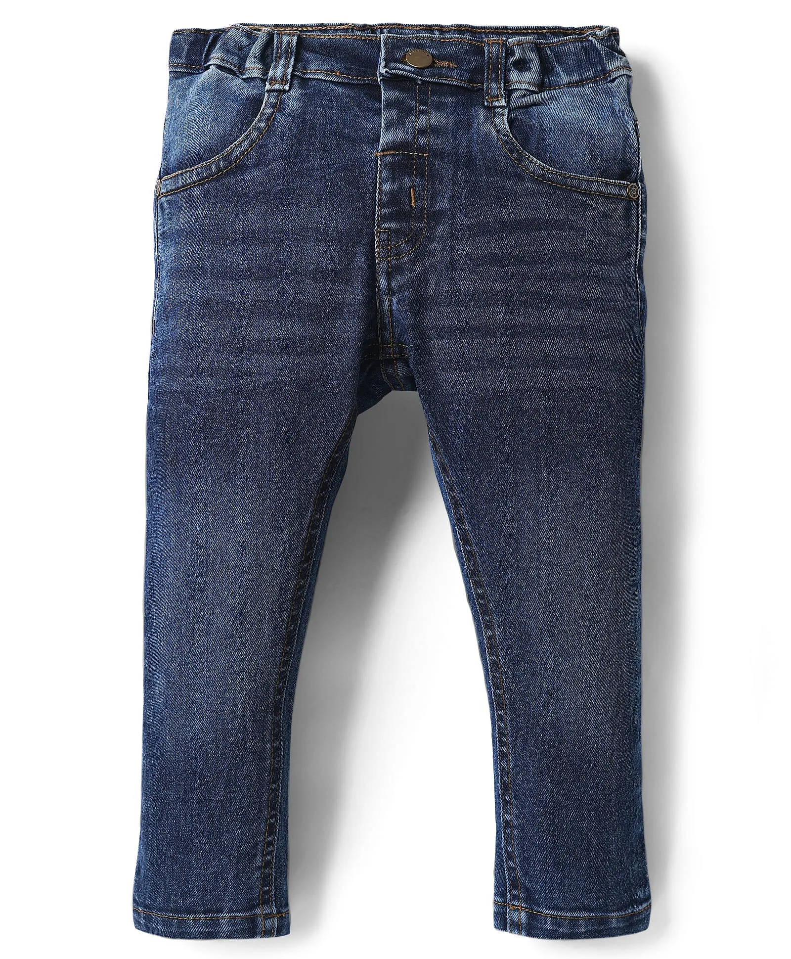 These washed denim jeans are comfortable for kids, featuring a classic look with handy adjustable elastic for an easy fit.